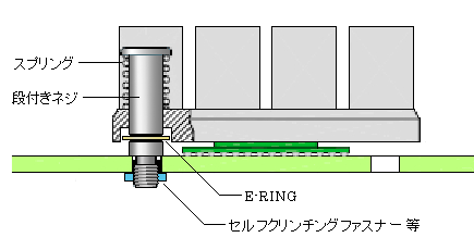 段付きネジ(ショルダースクリュー)は、ヒートシンクと基板を固定するために、スプリングとセットで使用されます。メカニカルな取付において、最も強固な固定方法の一つです。